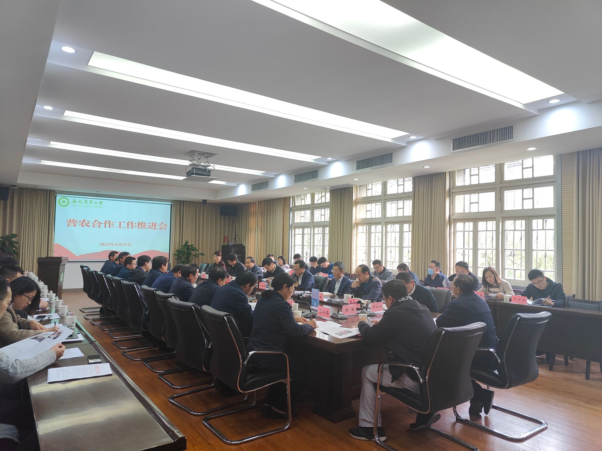 会议指出,加强与普农集团合作,是学习贯彻党的二十大精神,全面落实省委一号文件部署要求,扎实推进“两强一增”行动的生动实践,是学校谋划高质量发展、打造农业“三个高地”的重要举措和抓手,是2023年学校重点工作,必须全力以赴抓好落实。