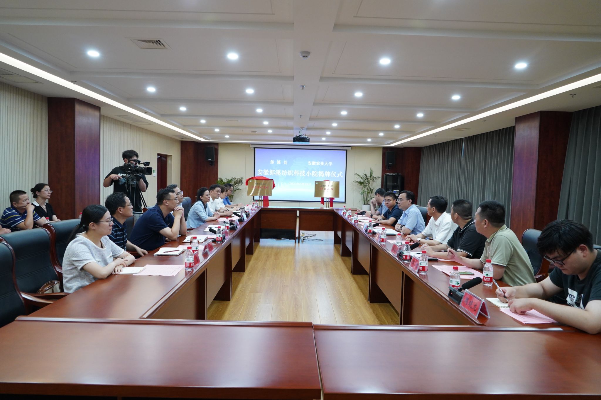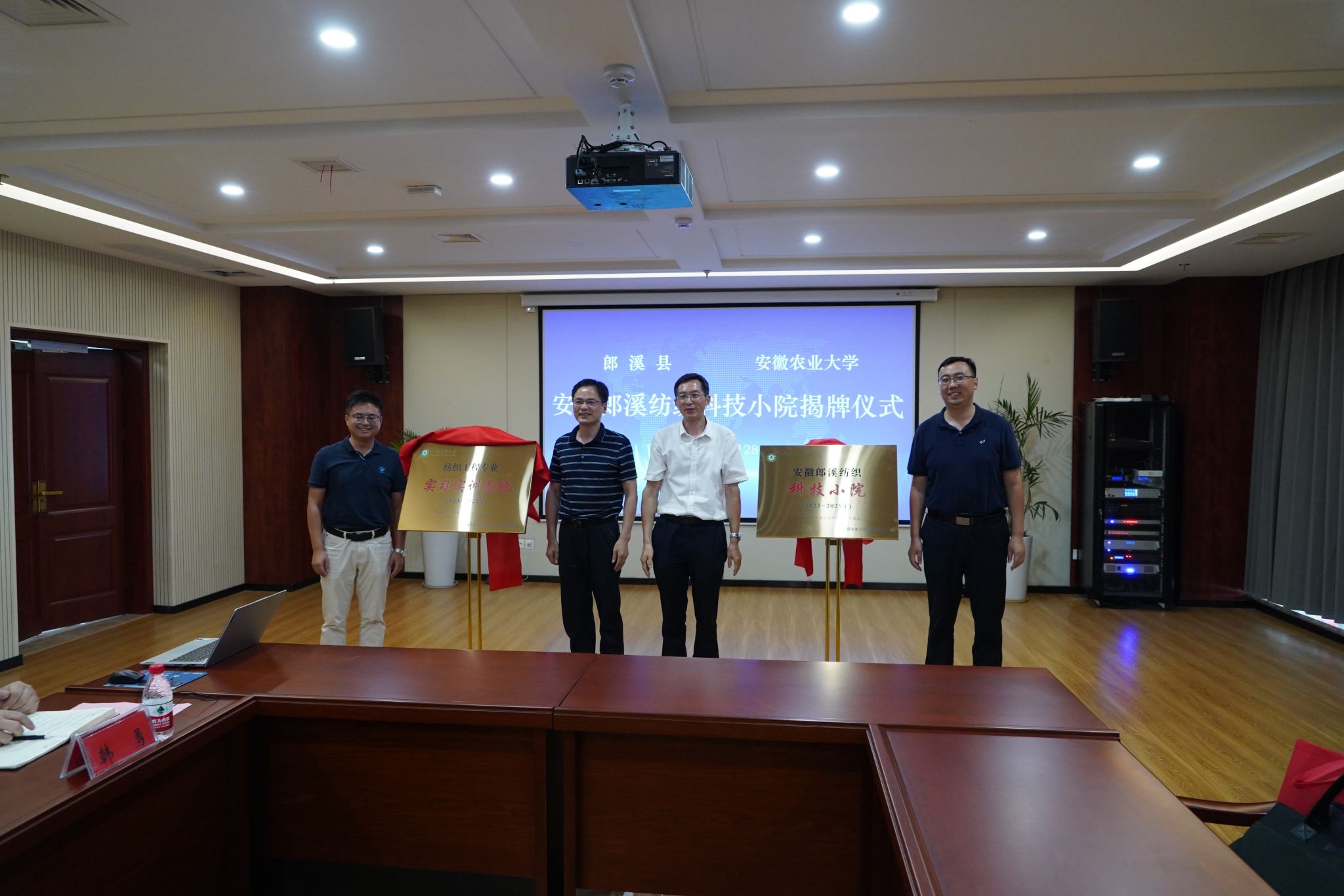 本网讯 6月28日下午,安徽郎溪纺织科技小院在郎溪县委党校揭牌成立。宣城市委常委、组织部部长朱立军,我校党委常委、副校长操海群,郎溪县负责同志,我校研究生院、轻纺工程与艺术学院和郎溪县相关部门负责同志以及派驻科技小院研究生代表参加揭牌仪式。