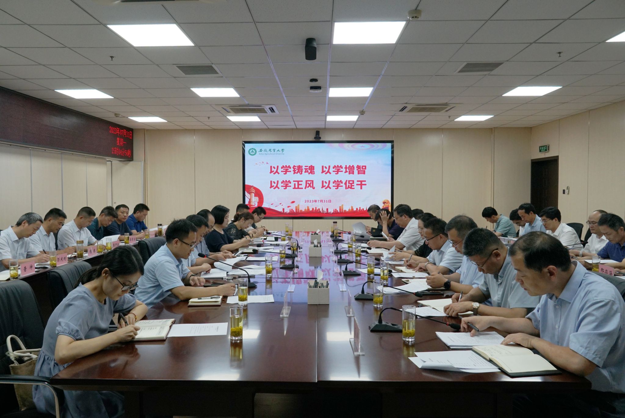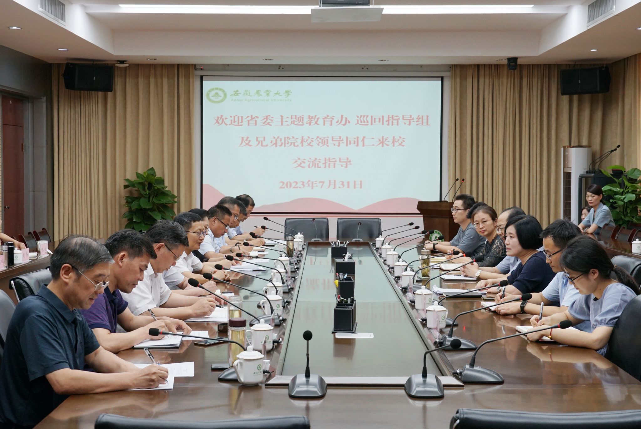 本网讯 7月31日下午,省委主题教育第十二巡回指导组紧盯问题整改整治工作会在我校召开。省委主题教育办整改整治组副组长江浩到会指导,省委主题教育第十二巡回指导组组长陈烨出席会议并讲话,副组长高文主持会议。