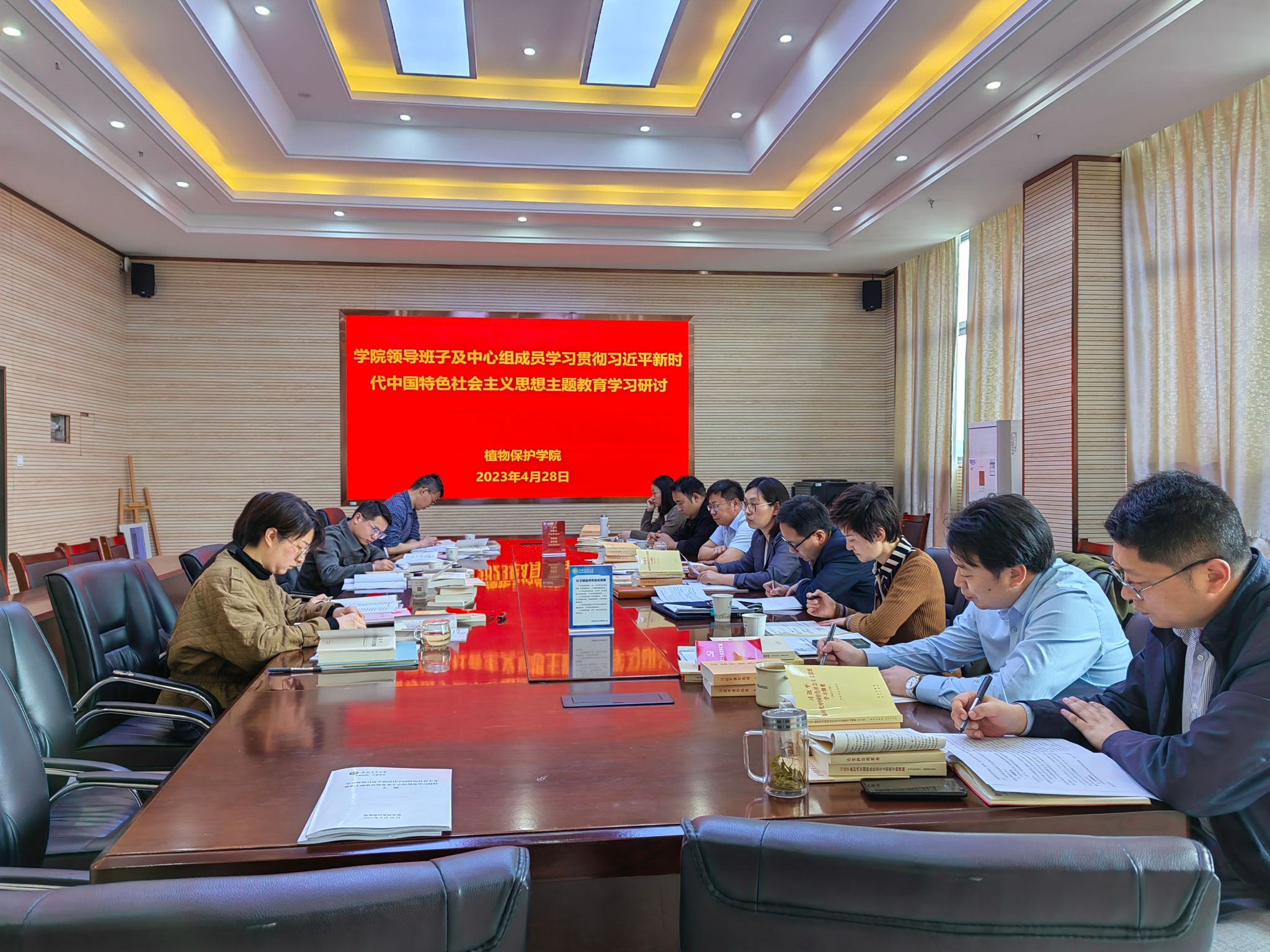 本讯网 4月28日,植物保护学院在中西部大楼1213会议室,召开学院党委领导班子及中心组成员主题教育学习研讨会。学院党政领导班子成员、各党支部书记参加会议。会议由学院党委书记刘柳主持。