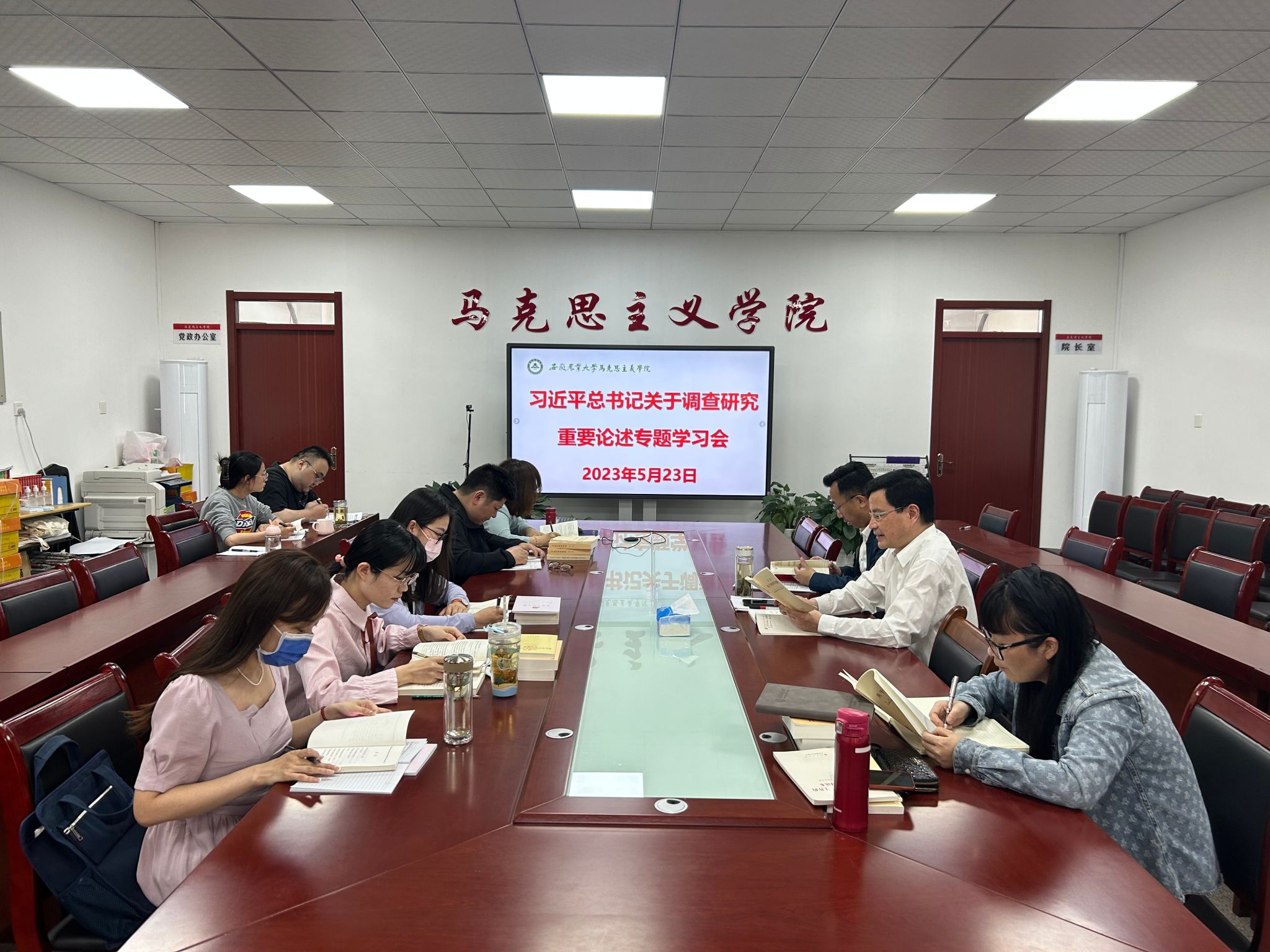 本网讯 为深入学习习近平总书记关于调查研究的重要论述,做好主题教育的调研工作,5月23日下午,马克思主义学院党委召开专题学习会议,院党委书记孙超主持会议。院党委副书记、院长方国武,院党委副书记、纪委书记、副院长袁修雨,党委委员,党支部书记等参加学习。