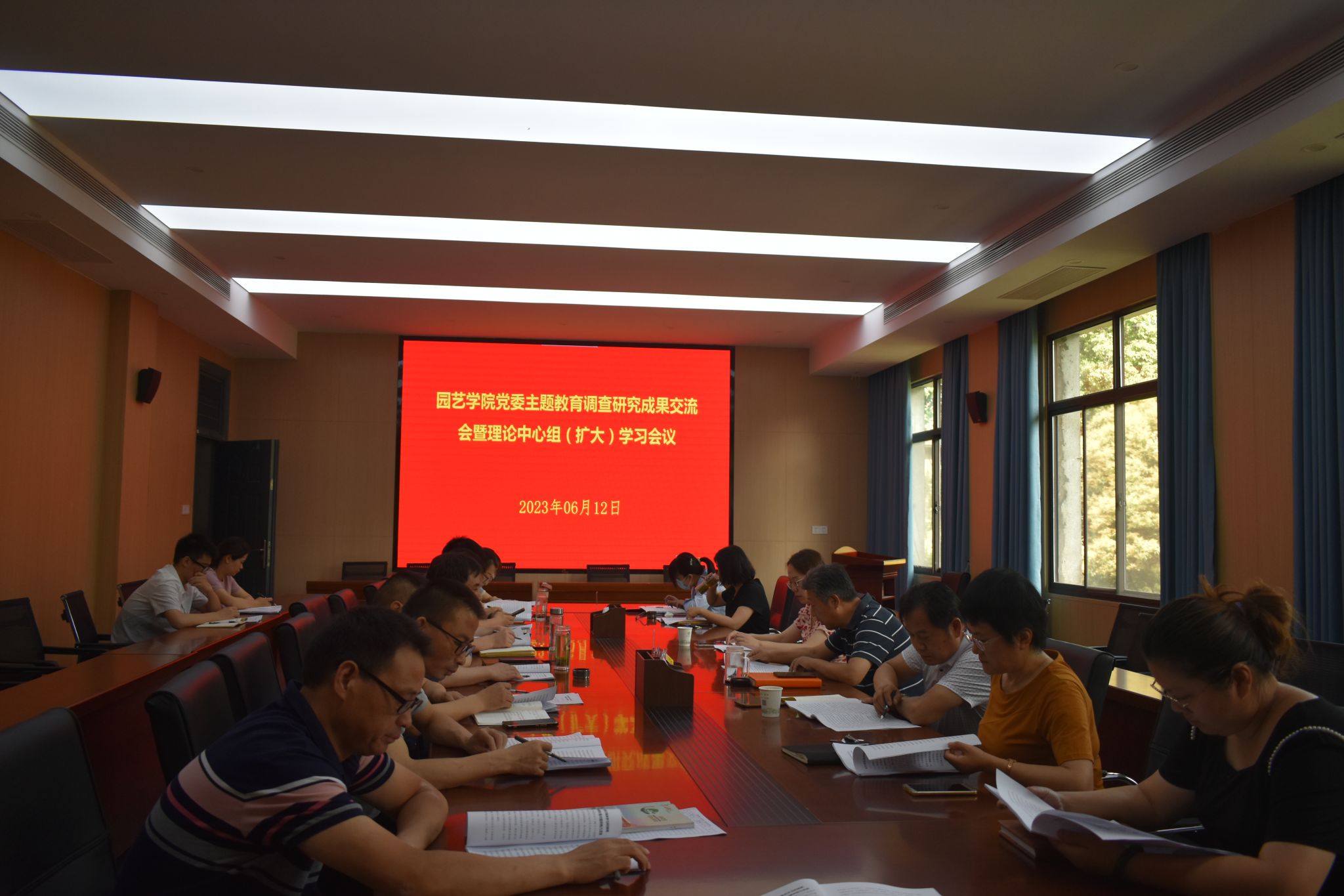 本网讯 6月12日,园艺学院在三楼会议室召开园艺学院党委主题教育调查研究成果交流会暨理论中心组(扩大)学习会。学院领导、院党委委员、副科以上干部、系主任、全体党支部书记参加了会议,校党委主题教育第四联络组组长刘凯列席会议,会议由院党委书记朱绍友主持。