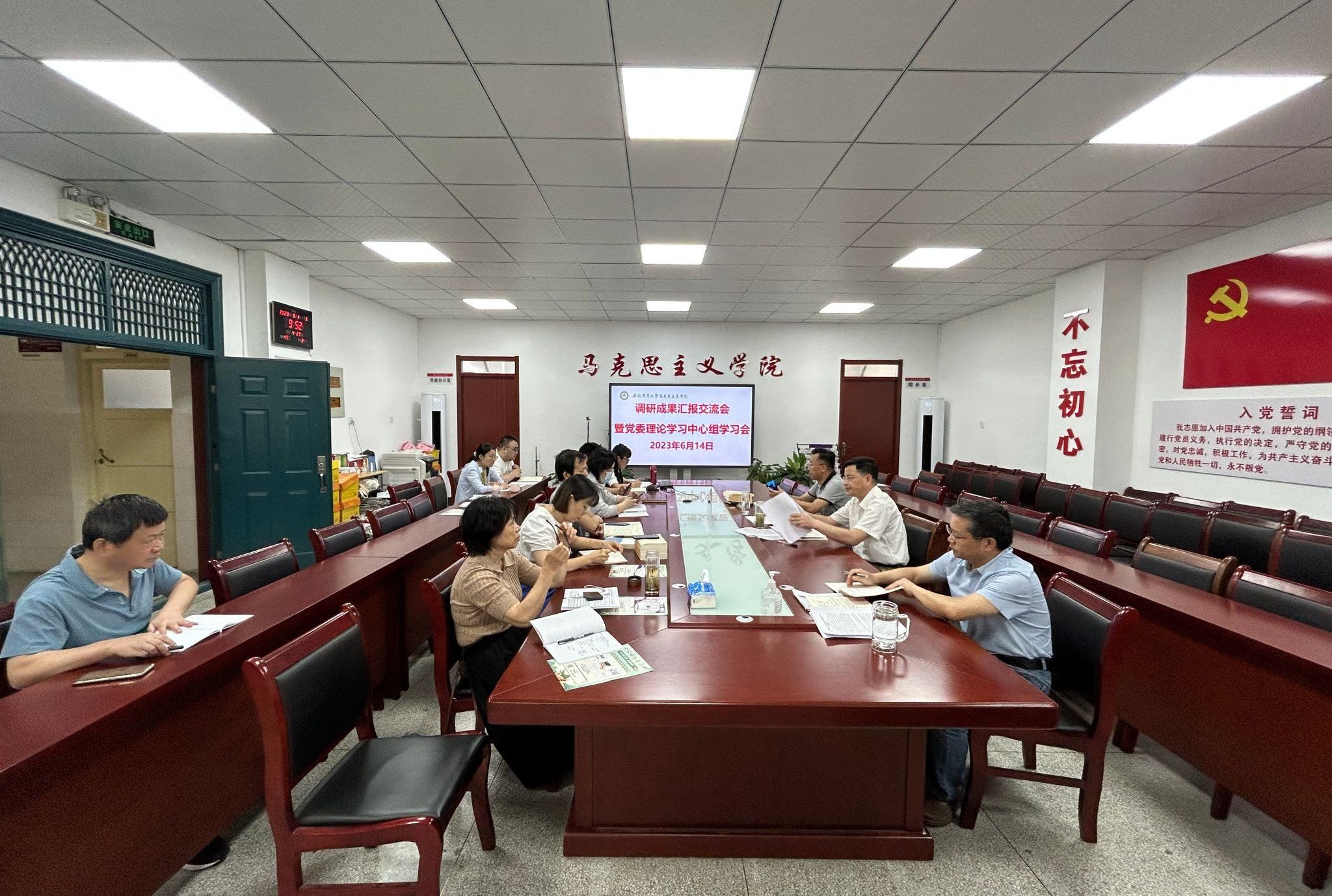 本网讯 6月14日上午,马克思主义学院党委在302会议室召开学习贯彻习近平新时代中国特色社会主义思想主题教育调研成果汇报交流会暨党委理论学习中心组学习会,研究部署相关工作,学院党委书记孙超主持会议。学院党委副书记、院长方国武,党委副书记、纪委书记、副院长袁修雨,各党支部书记,教研部(中心)主任等参加会议。