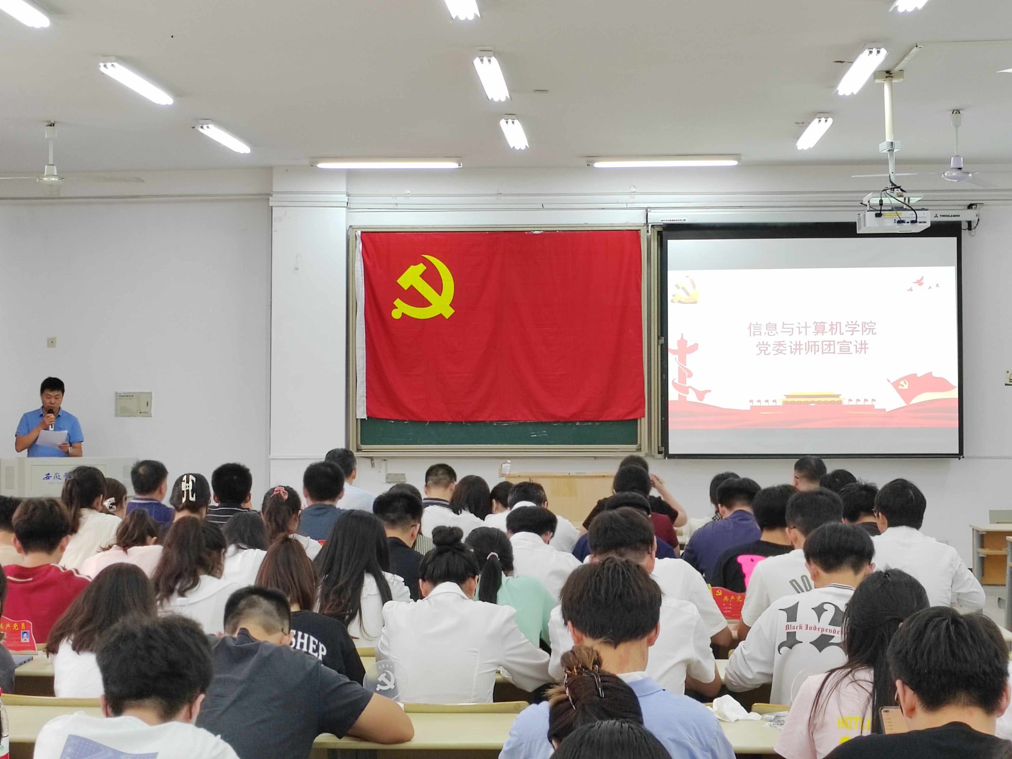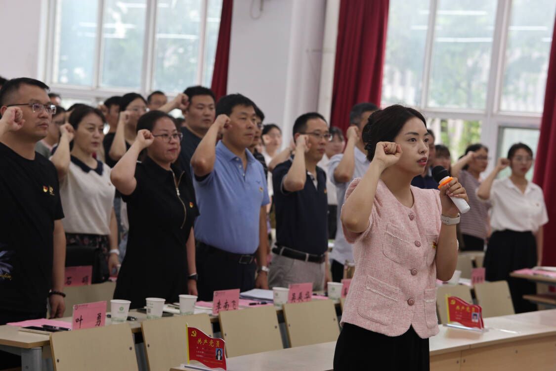 本网讯 6月30日中午,信息与计算机学院开展了“挺膺担当育新人 凝心聚力促发展”主题党性教育暨入党宣誓仪式,学院党委委员、党支部书记、全体学生党员、教工党员代表参加了仪式。