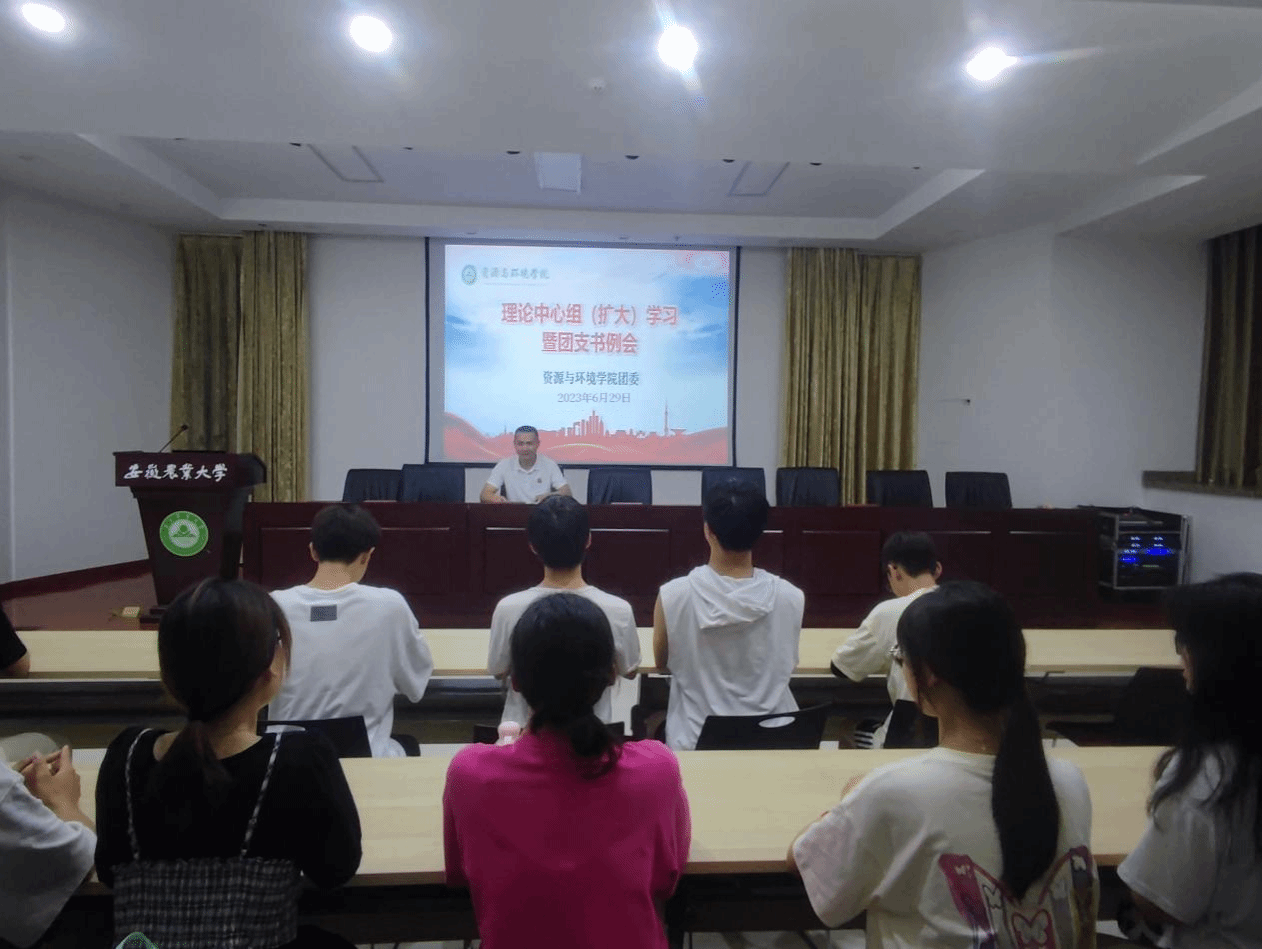 本网讯 6月29日晚,资源与环境学院团委在久易报告厅召开理论中心组(扩大)学习暨团支部书记工作会议。学院团委中心组成员、各年级专业团支部书记参加会议,会议由学院团委负责同志主持。