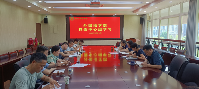 本网讯 7月10日下午,外国语学院召开党委理论中心组学习会,学院党委理论中心组成员参会。会议由学院党委书记何如海主持。