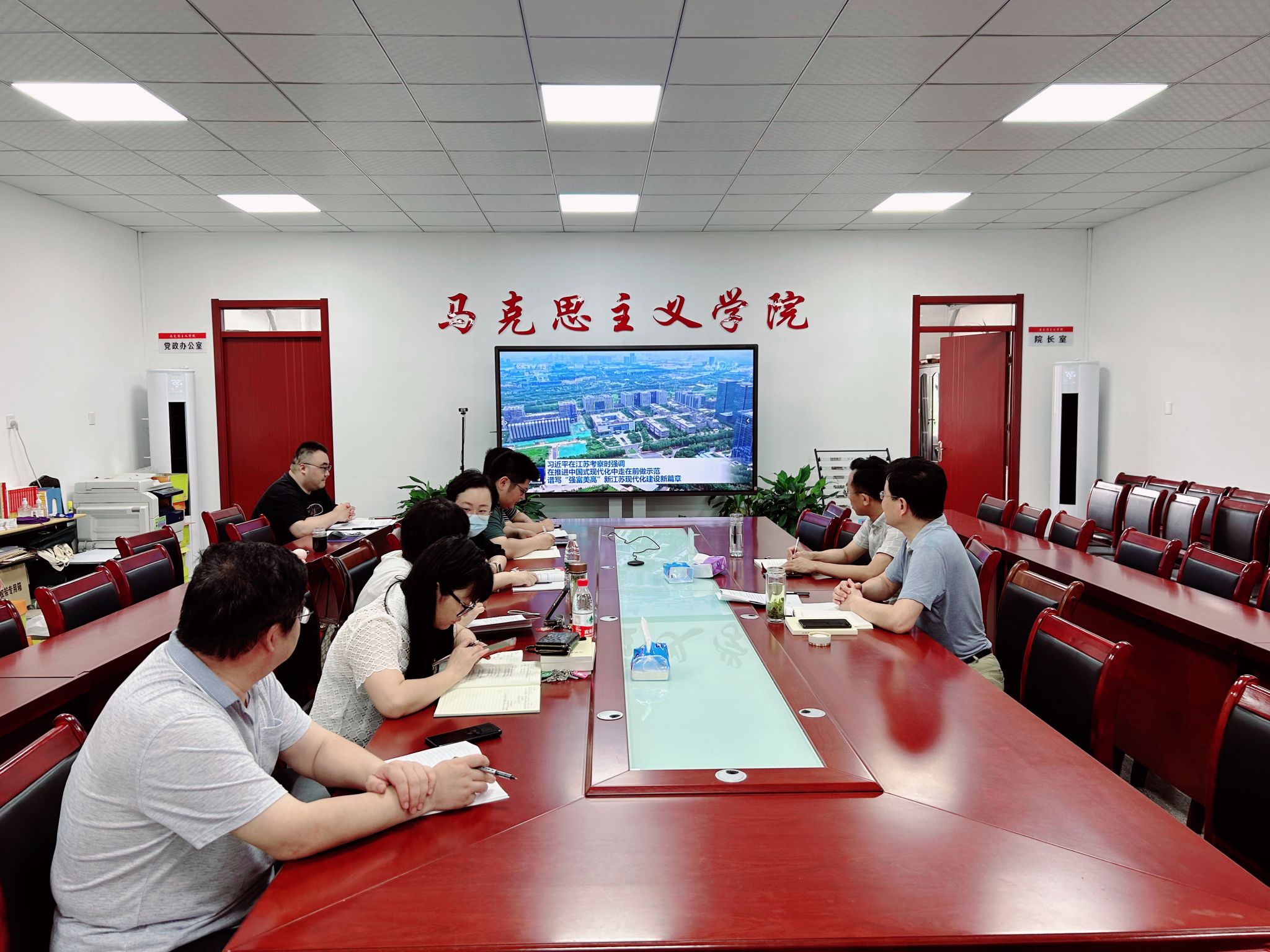 会议集体学习了习近平总书记在中共中央政治局第六次集体学习时的重要讲话,习近平总书记关于党的建设的重要思想,观看了习近平总书记在江苏考察时的重要讲话视频资料以及省委书记韩俊同志来校调研精神,学习了《论党的自我革命》相关篇目。部分同志作了交流发言。
