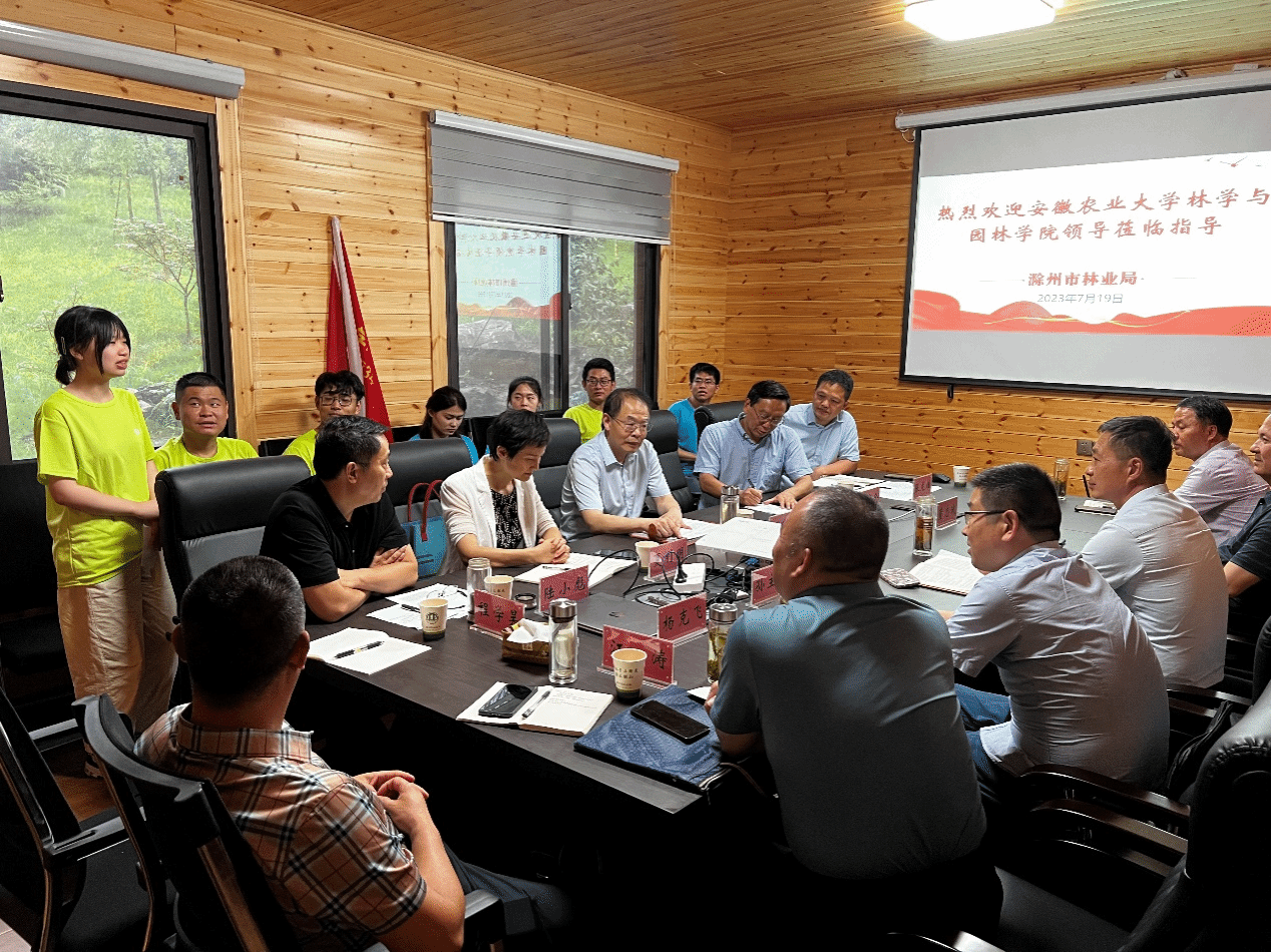 程云海对学院一行表示欢迎,简要介绍了滁州市全市林草种质资源、林业种苗和科研工作等情况,希望与学校、学院就科研合作、产业对接、人才培养等方面有更多交流互动,力争有更多产出成果。