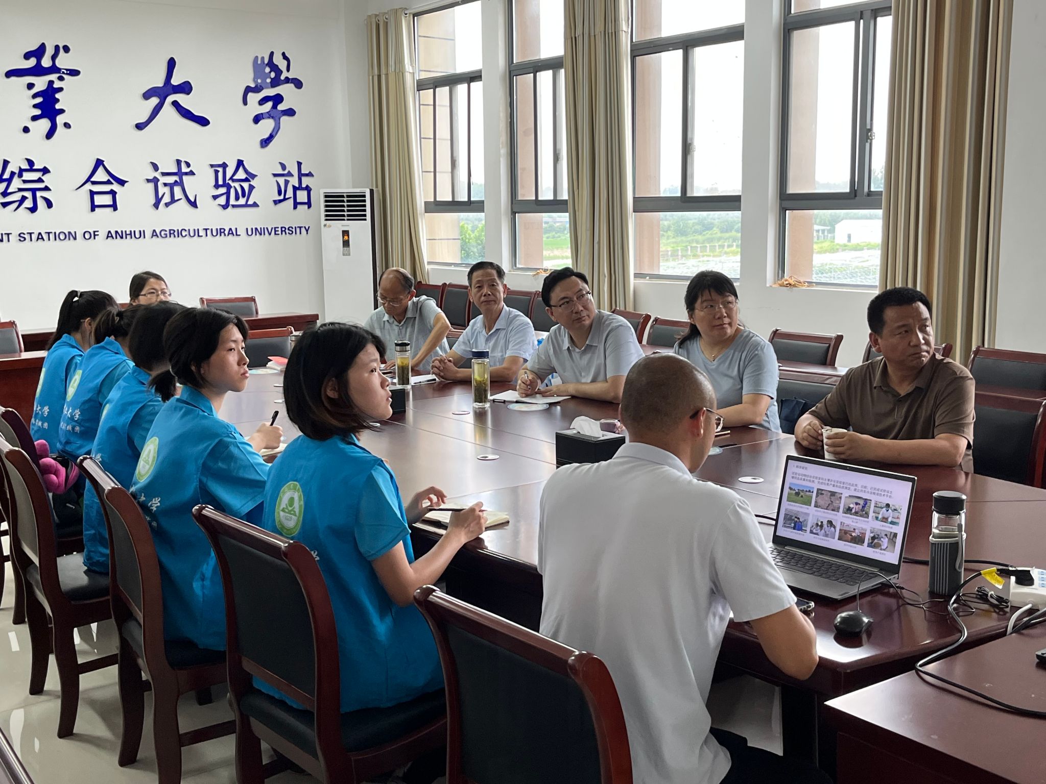 本网讯 7月15日,动物科技学院党政领导一行来到定远县江淮分水岭综合试验站看望慰问正在开展暑期“三下乡”社会实践活动的师生们并召开座谈会。