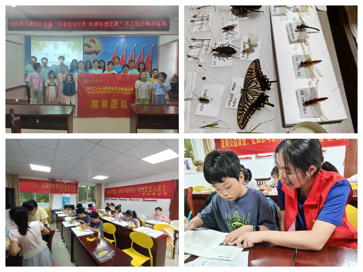 琥珀街道琥珀潭社区是学院长期结对共建社区。为解决假期家长工作繁忙、儿童无人看管和辅导作业的问题,同时帮助社区儿童度过一个愉快充实的暑假,“逐浪夏日”志愿家教团队暑期扎根社区,分组持续开展各类实践活动。实践团为社区青少年儿童辅导假期作业,同时开设涂鸦、画石膏娃娃、串手链、制作干花相框、创作毛球画、粘毛球圈等丰富有趣的手工课。
